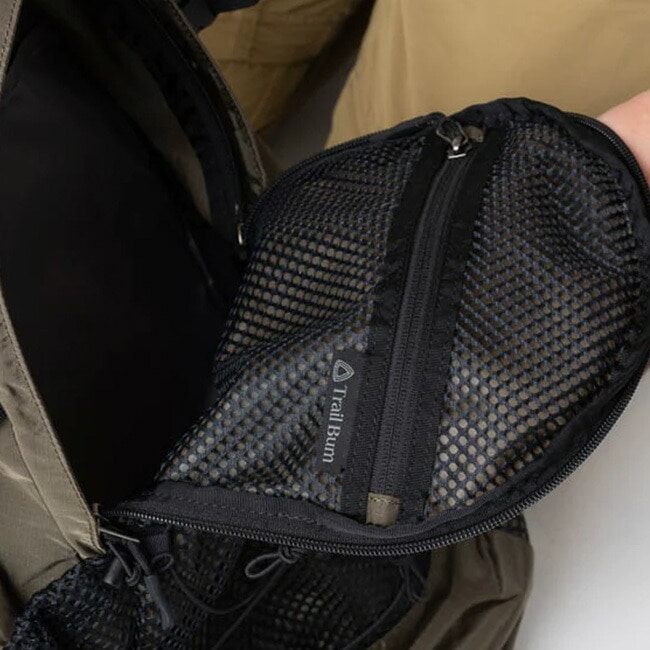 フロントのバンジーコード、メッシュポケット、サイドのドリンク用メッシュポケットなど便利に使える機能的なデザインです。