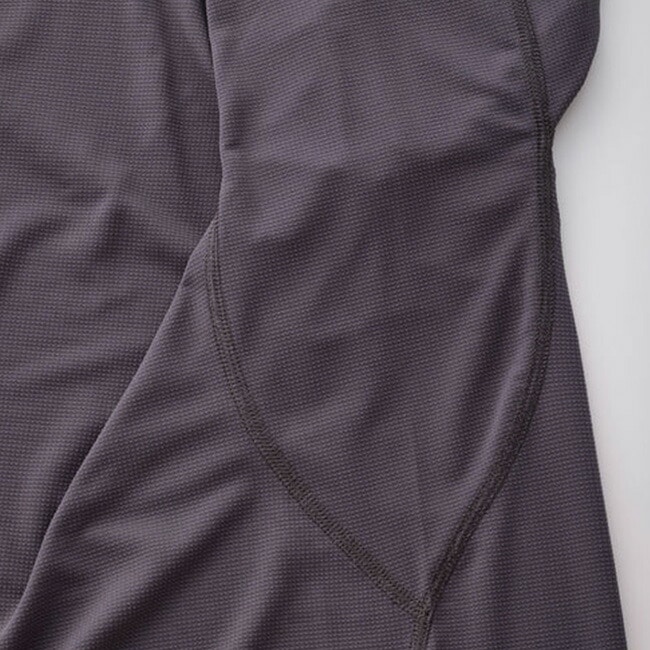 汗を吸って拡散・蒸発させる従来のベースレイヤーとは違い、かいた汗を生地表面から弾き落としてドライな着心地を維持。