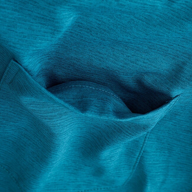 シンプルなポケットTシャツは、肩の縫い目をオフセットさせて、バックパックを背負ったときも縫い目が擦れにくい仕様です。