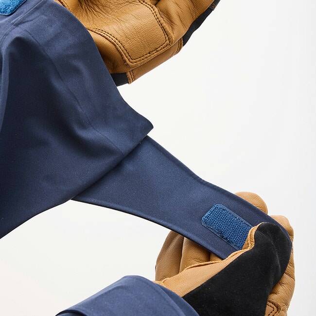 先例がなかったこのユニークなデザインは、もともとはアイスクライミングでの使いやすさを追求した結果ですが、ウェアのセンターに硬いファスナーがないためにしなやかな着心地が実現。