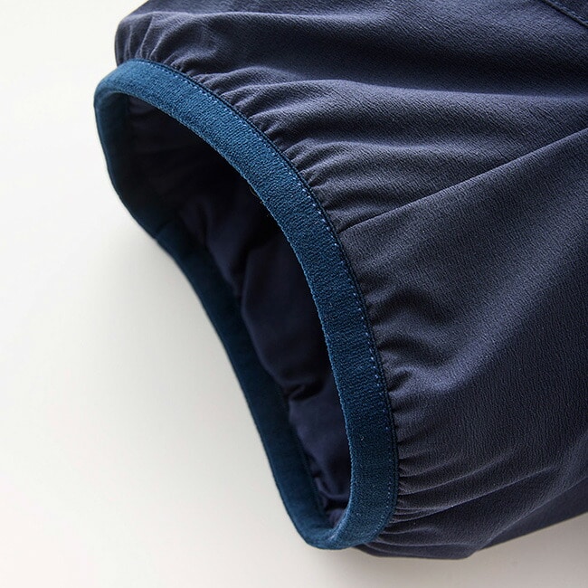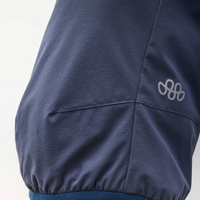 表地はストレッチ性に優れるDWR(耐久撥水)加工済の「Primeflex」、中綿はソフトな「Vivo Extreme ECO Stretch」で、保温性と通気性、ストレッチ性を兼ね備えています。