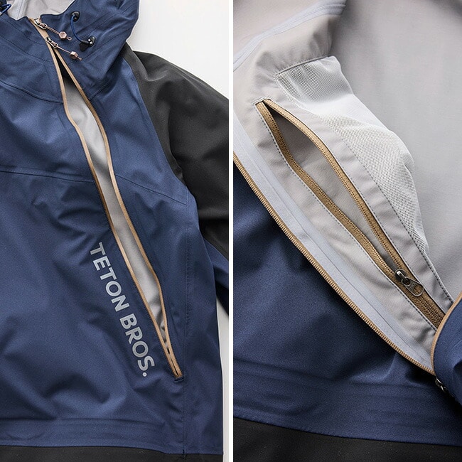 先例がなかったこのユニークなデザインは、もともとはアイスクライミングでの使いやすさを追求した結果ですが、ウェアのセンターに硬いファスナーがないためにしなやかな着心地が実現。