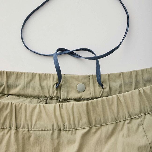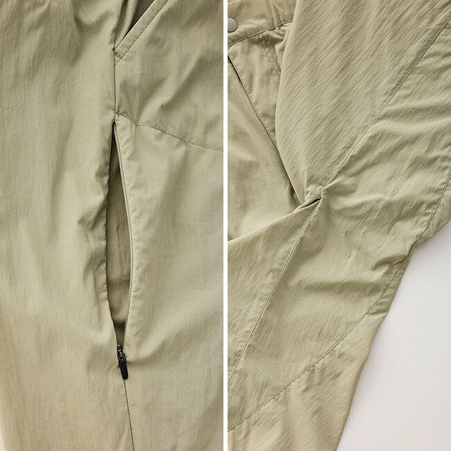 ヒップ回りの生地を大きく取るデザインとストレッチタフタの相乗効果によって、座った時の突っ張り感を抑え、飛行機やバスでの長時間の移動も苦になりません。