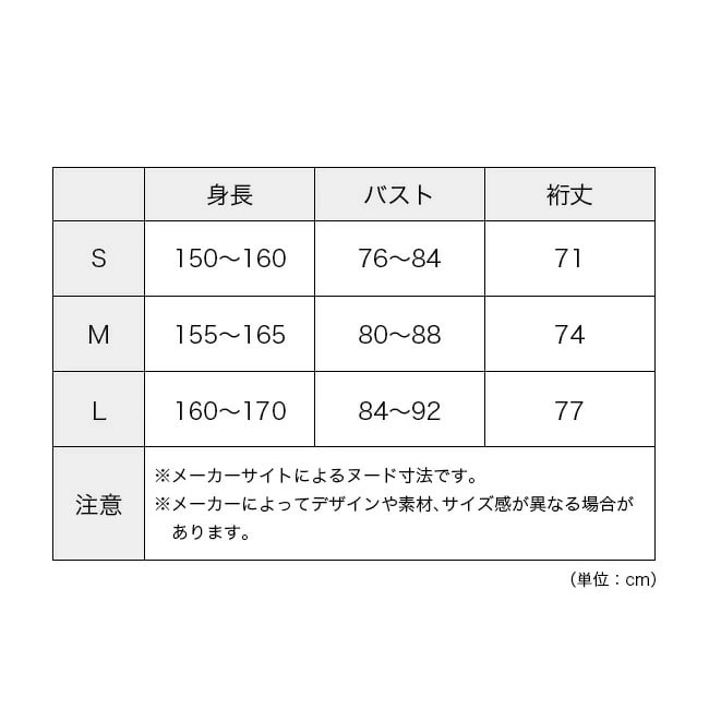 ※サイズ表の数値は衣服の寸法ではなく、基準とする体のサイズです。