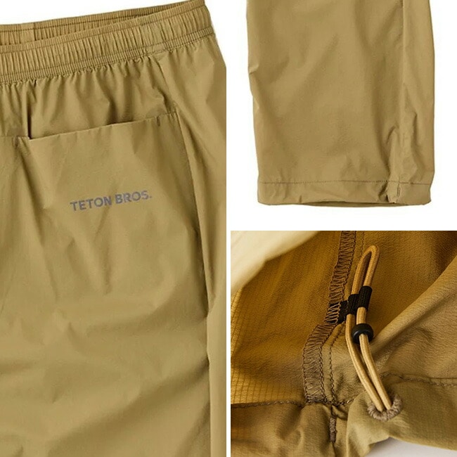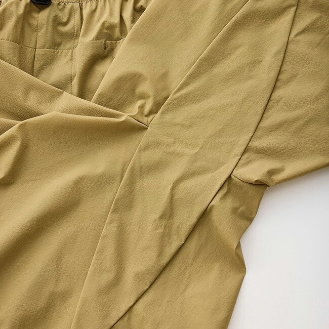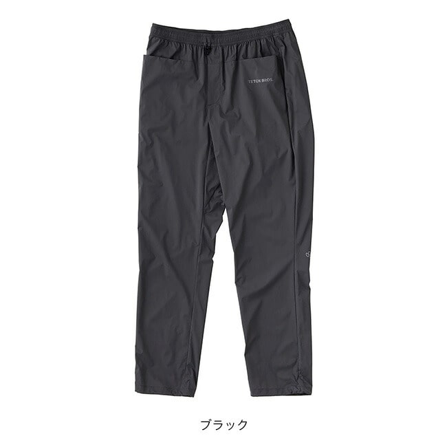 WIND RIVER HOODYと同素材のウィンドシェルパンツです。薄手軽量で防風性と撥水性を備え、耐久性も十分。