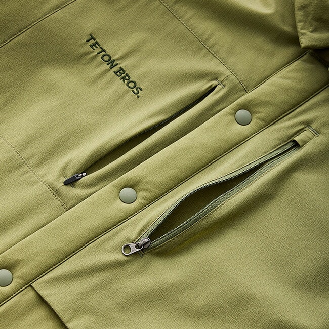 エルボーパッチ付き、チェストポケットとウェストポケットが2つずつ。