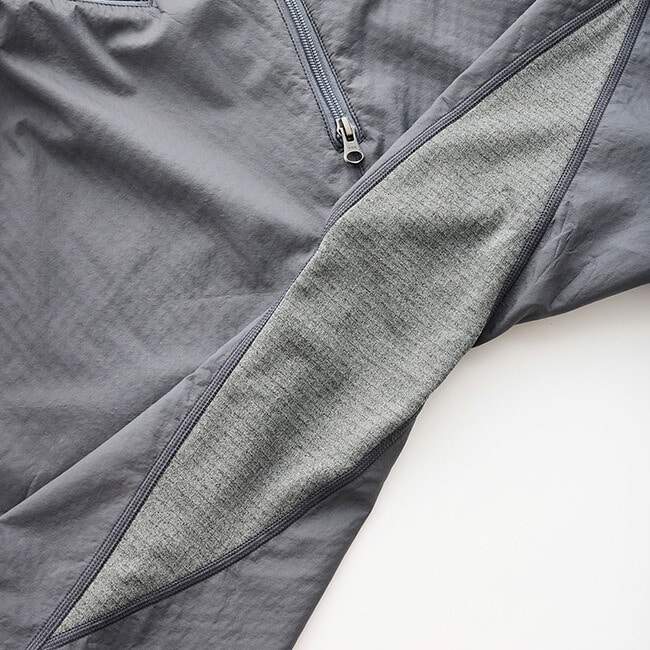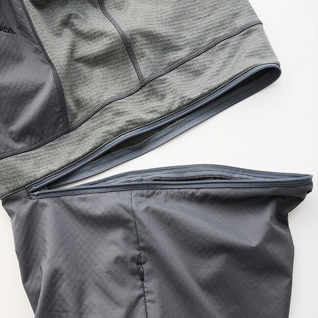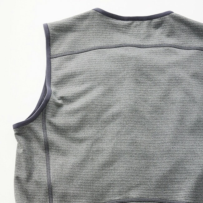 肩から背中、脇、ウェスト、股下などの熱がこもりやすい場所には、通気性に優れる「GrapheneGrid Fleece」を配置。