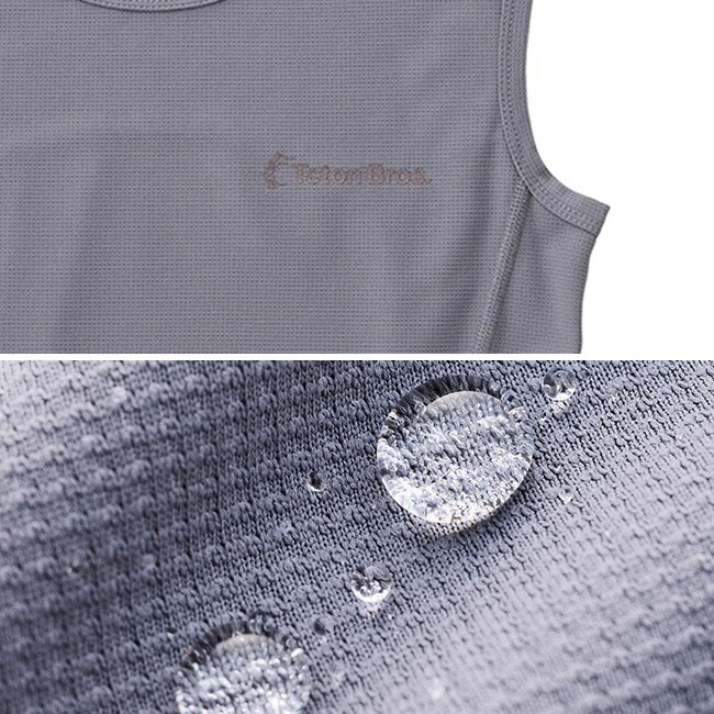 腕振りを妨げず、多くのランナーに愛用されているノンスリーブです。素材はストレッチ性と通気性に優れるポリエステルで、超撥水加工「Dry Action」を施して積極的に汗を逃がします。
