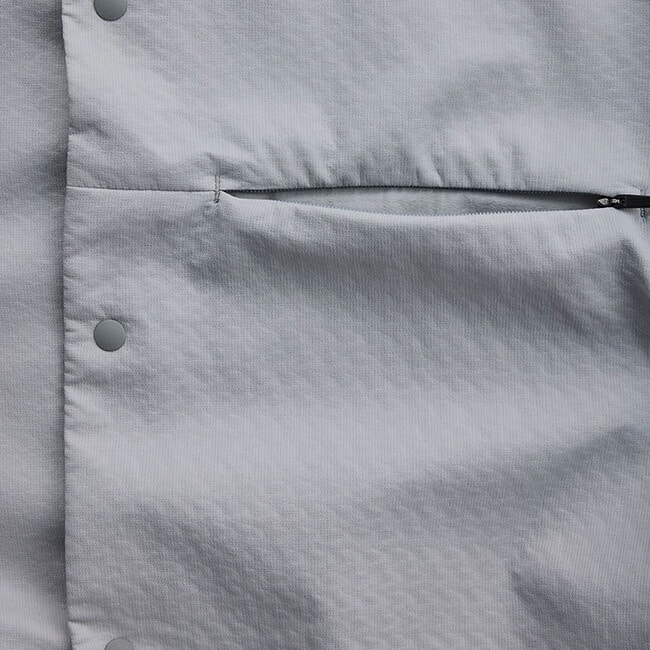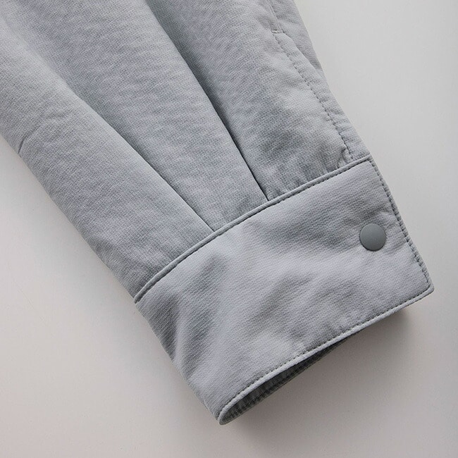 ゆとりを持たせたシルエットでレイヤリングしやすく、ミッドレイヤーとしてはもちろん、シャツジャケットのような使い方も可能。