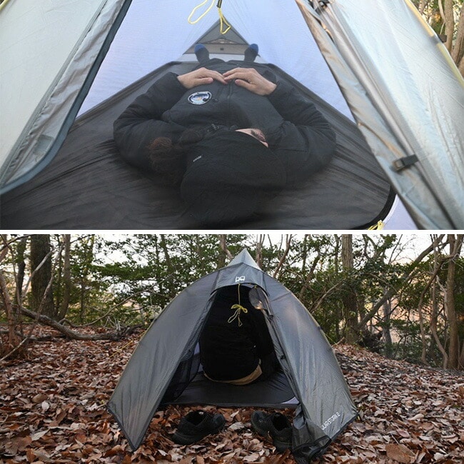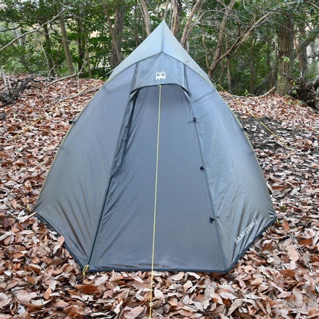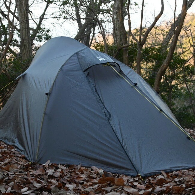 耐風性の高い流線型のフォルムが特徴的な、日本限定モデルの完全自立式の超軽量2人用テント