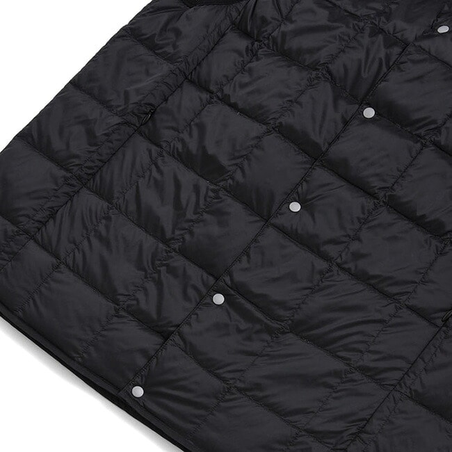 TAIONの定番、ベーシックインナーダウンは、ジャケットやコートの下に着るのはもちろん、Tシャツ・シャツ・パーカーなどの上にも気軽に羽織れる、軽くて暖かく着回しやすいシンプルなデザインが特徴です。嵩高が高く、保温性の高い800FPダウンを使用。