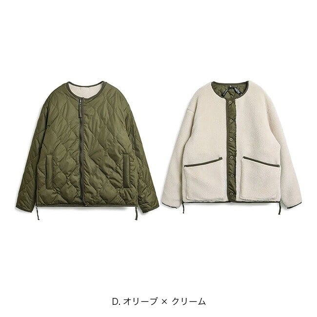 ※ボアを使用したリバーシブル商品という特性上、ボア側を内側に着用するとタイトになります。余裕を持って着用希望のお客様はワンサイズアップをおすすめします。