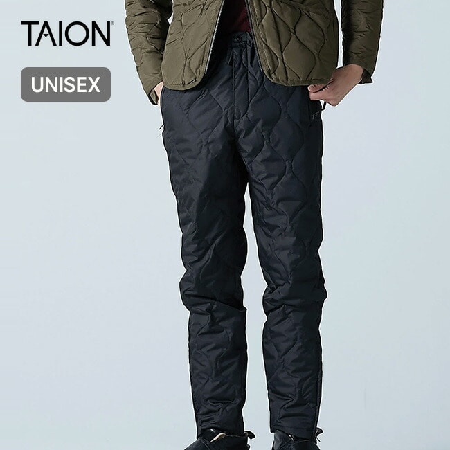 ファスナー使いがアクセント、裾にかけてすっきりしたシルエットのパラシュートダウンパンツ。丈夫なリップストップ生地を使用し、保温性に優れた800FPのダウンを採用、ヘチマキルトのダウンステッチでミリタリー感を演出。