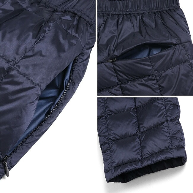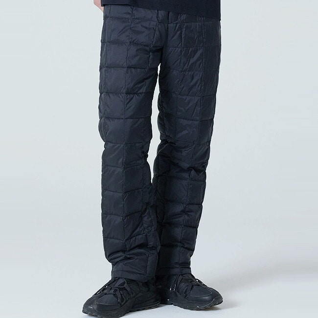 ウエストはゴム+紐で履きやすく、定番で使えるレギュラーシルエット、シーンを問わない万能ダウンパンツです。