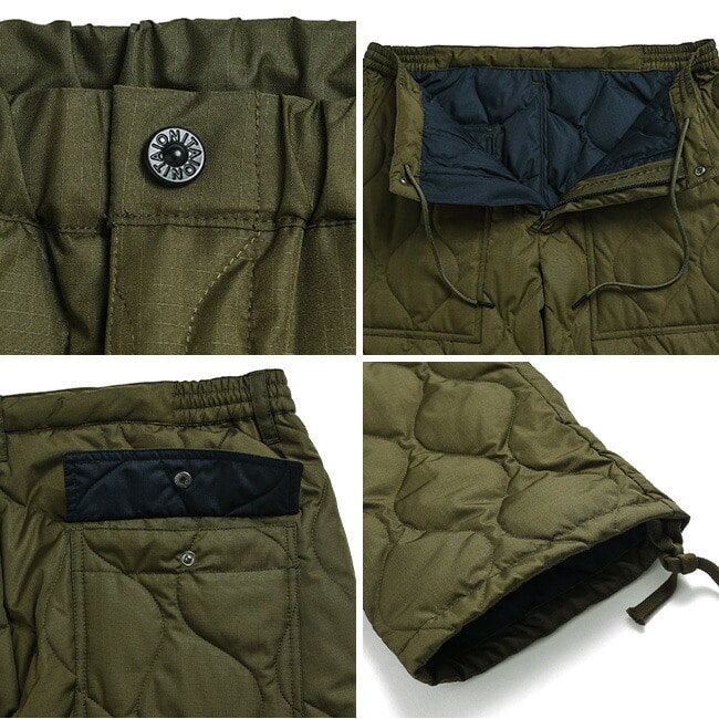 普段使いしやすいレギュラーシルエットのミリタリーダウンパンツ。丈夫なリップストップ生地を使用し、保温性に優れた800FPのダウンを採用、ヘチマキルトのダウンステッチでミリタリー感を演出。