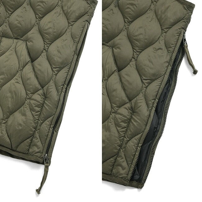 SOFT SHELL(柔らかい生地)を使用した、ミリタリーVネックWジップダウンベスト