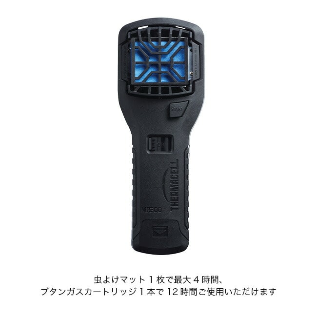 虫よけマット1枚で最大4時間、ブタンガスカートリッジ1本で12時間ご使用いただけます。