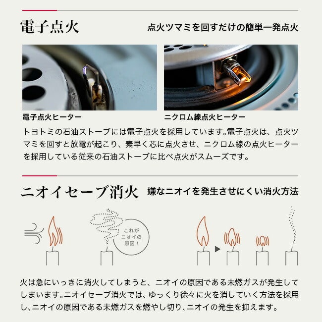お部屋全体をムラなく暖めながら、やさしい光で足元を照らすランタン調対流形石油ストーブ。