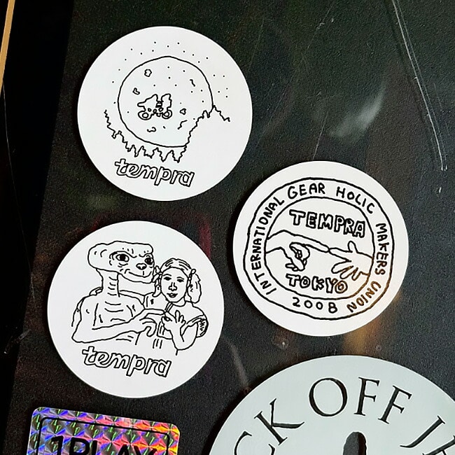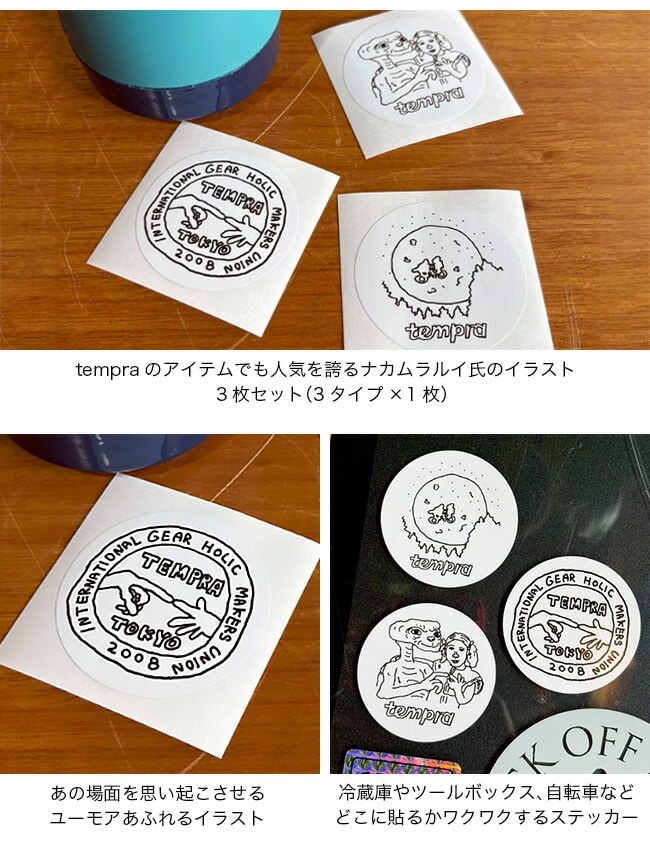 tempraのアイテムでも人気を誇るナカムラルイ氏による、POPUPのために描き下ろしたイラストをステッカーにしました。