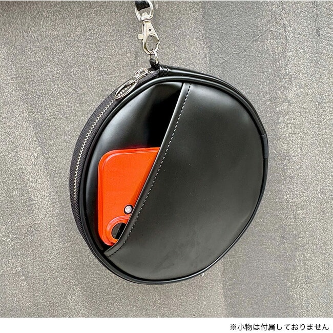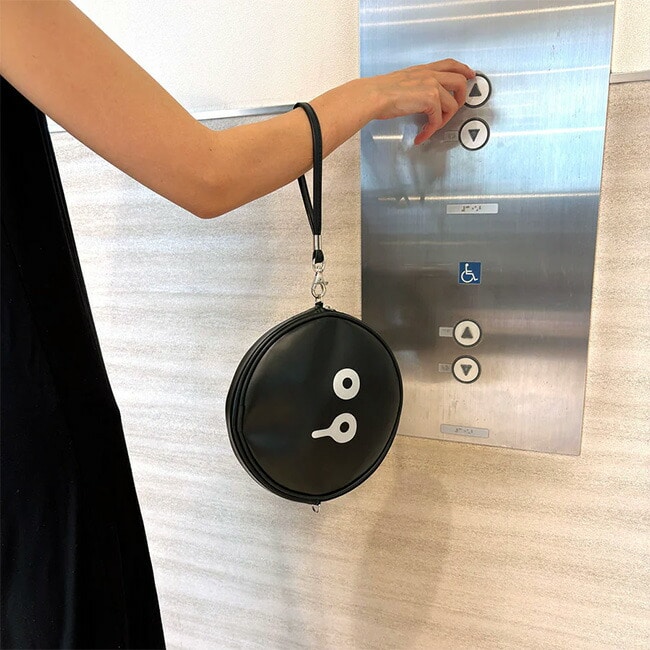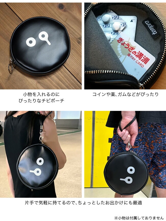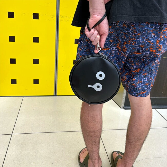 神山隆二さんの代表的なキャラクターRAT FACEを、オリジナルの丸型の大小のポーチをベースに親子をイメージ、コインや薬、ガムやAirTagなどの小物を入れるのにぴったりなチビポーチと、財布やスマホもすっきり収まるクラッチポーチを製作しました。外ポケットにはスマホや文庫本等がジャストなサイズで、ストラップを持つと落ちにくいように角度を工夫してあります。