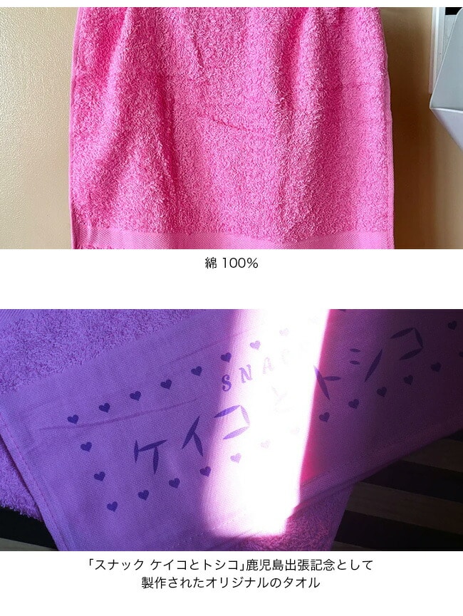 「スナック ケイコとトシコ」鹿児島出張記念として製作された、オリジナルのタオルです。
