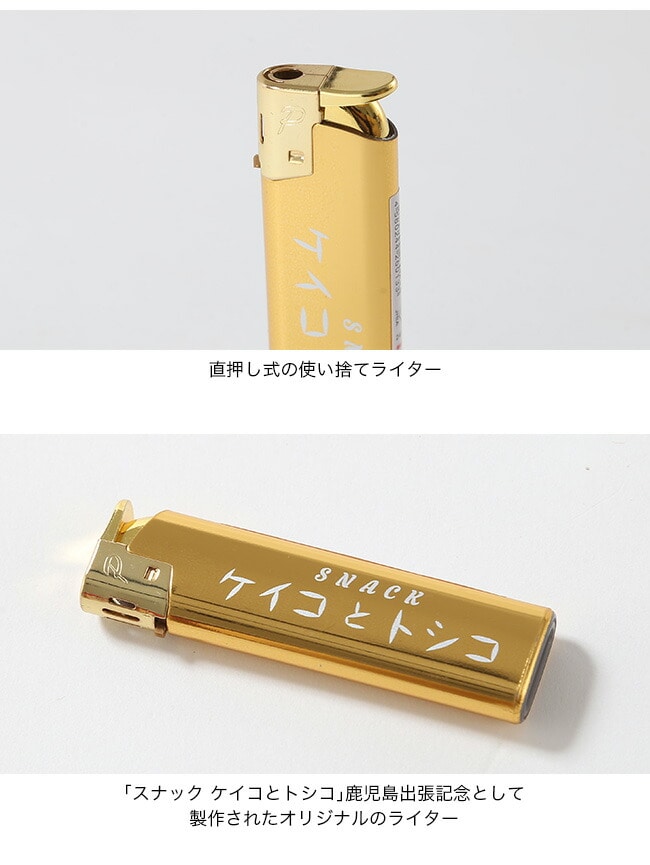 「スナック ケイコとトシコ」鹿児島出張記念として製作された、オリジナルのライターです。
