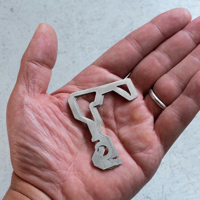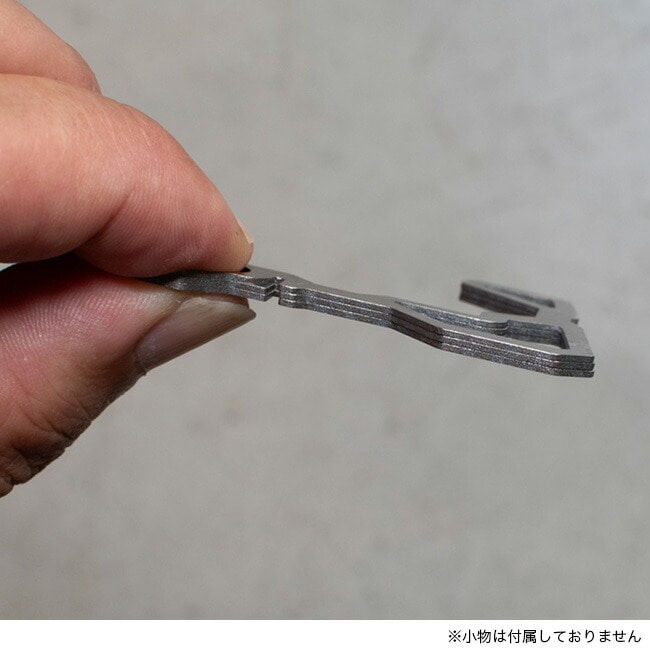 0.8mm厚のチタン板を精密カットする事で作られ重量は7.5gと最軽量クラス、分解したサイズは6cm x 5cmと最小です。