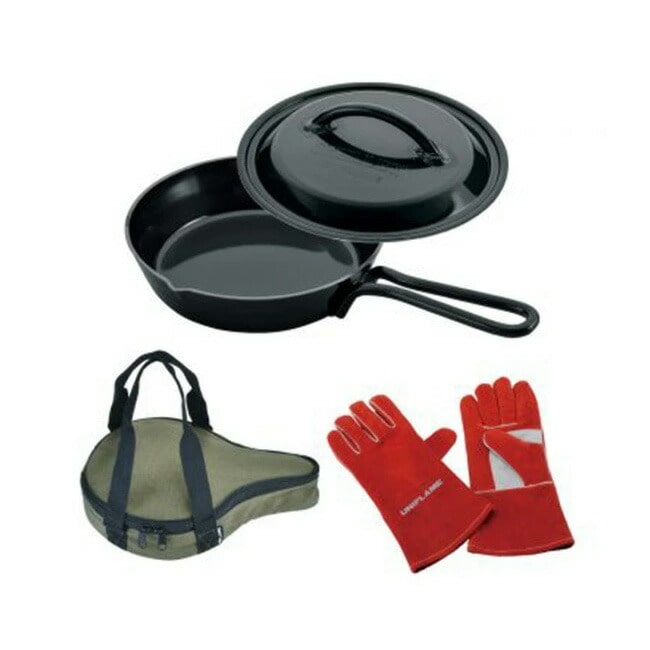 スキレット7インチ、収納ケースグリーン、キャンプグローブレディースのアイテムが揃ったお得なセット!