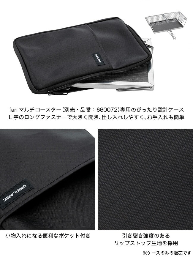 ユニフレームのfanマルチロースター専用に設計された収納ケースです。ロースター本体をしっかり保護しながら、持ち運びや保管をスマートにサポートします。
