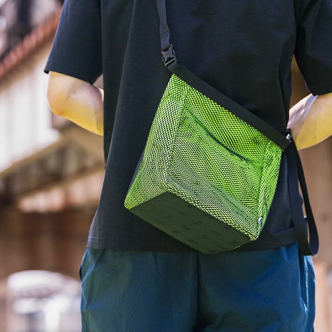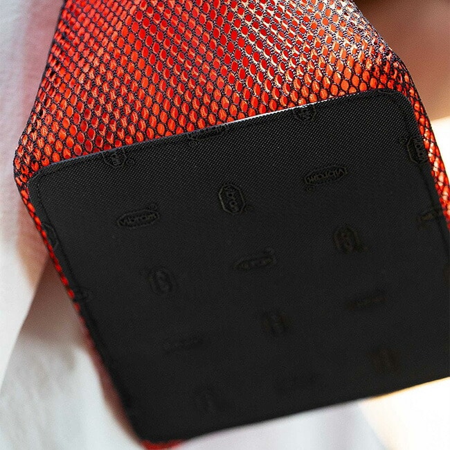 本来は粒子の細かいチョークを入れるものですが、UNITIUM.では「メッシュ」を重ね合わせた(Overlap)独自の構造で、ライフスタイルで活躍するプロダクトにモディファイしました。ボトム部分にはVibram®を採用し、メッシュ素材ながら置き場所の状況を気にせずにご使用いただけます。
