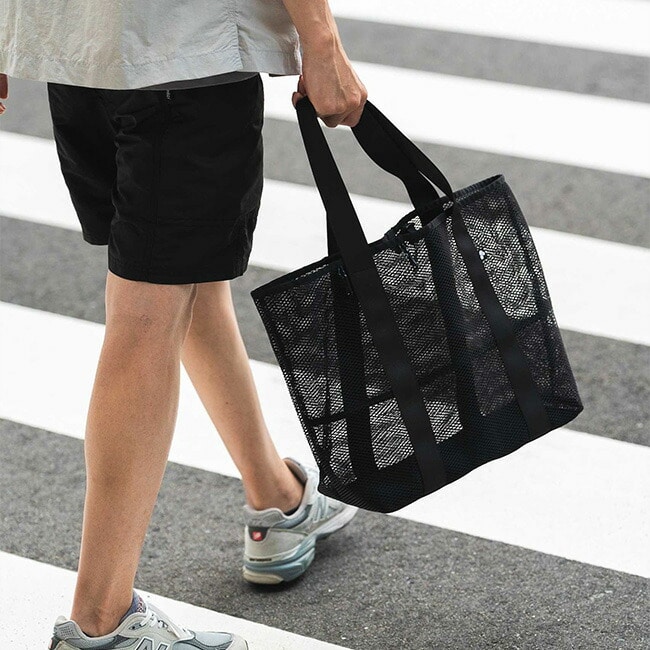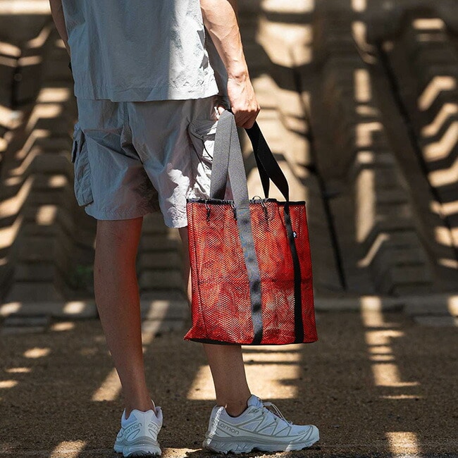また生地の強度、 ハリ感に対してメッシュ特有のしなやかさがあるので、折り畳むことでサブバッグとしても使えます。
