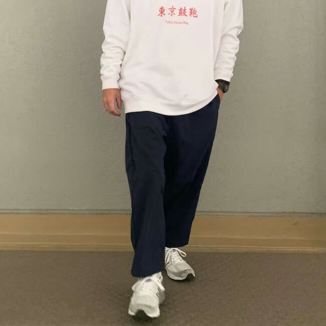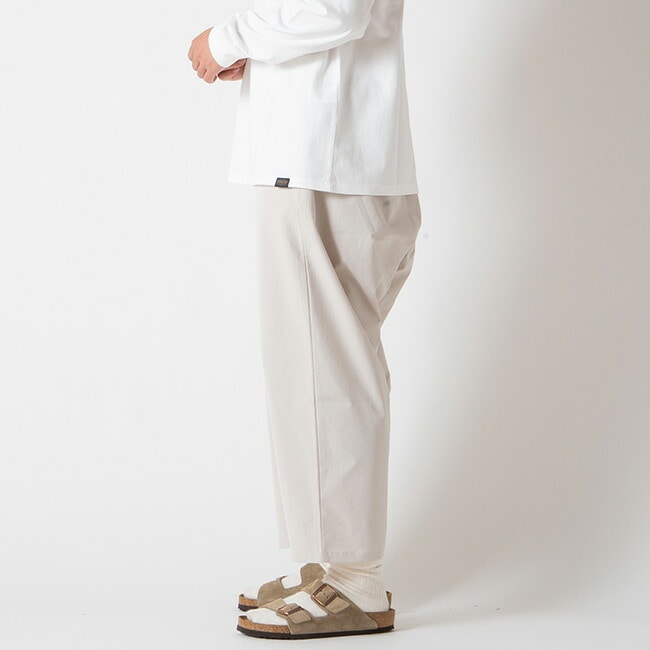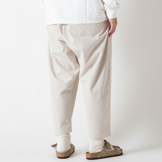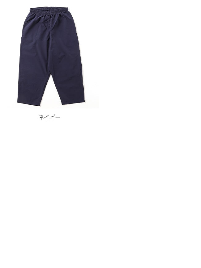 汚れがつきにくい、シワがつきにくい、静電気が起きにくいちょっと変わったポリエステル素材を使用してます。ゆったりとしたバルーンパンツ。