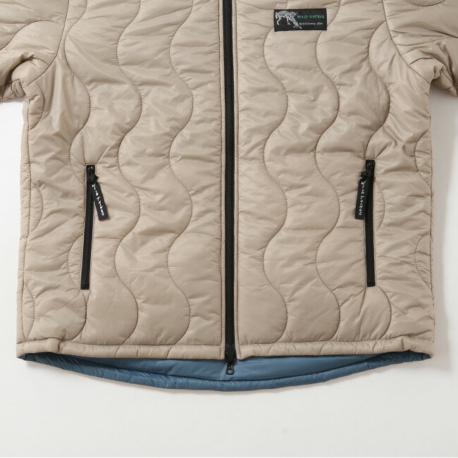 表側は往年のWILD THINGSで人気を集めた波キルトに、WILD CATの旧ロゴ復刻ネームでレトロアウトドアな雰囲気。ポケット内からドローコードで裾を絞ることができる。