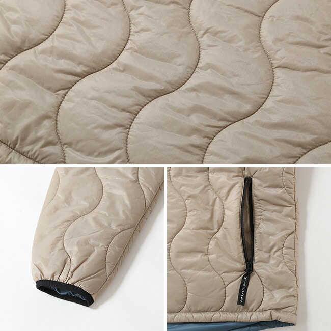 さらに表裏両側にPERTEX QUANTUM、 中綿にプリマロフトを使用し機能性も兼ね備えている。