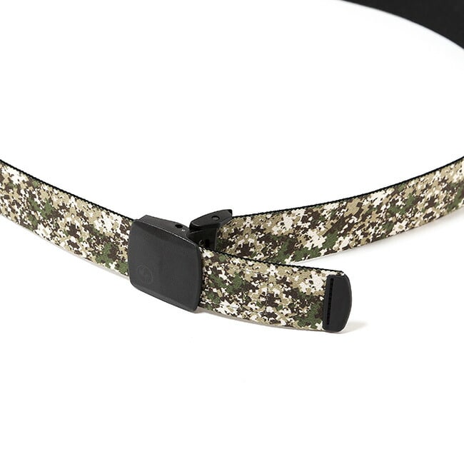 ストレッチ性のあるウェービングテープを使用し、腰周りにしなやかにフィットするベルト。