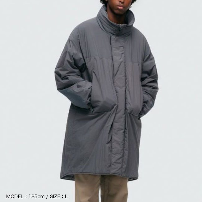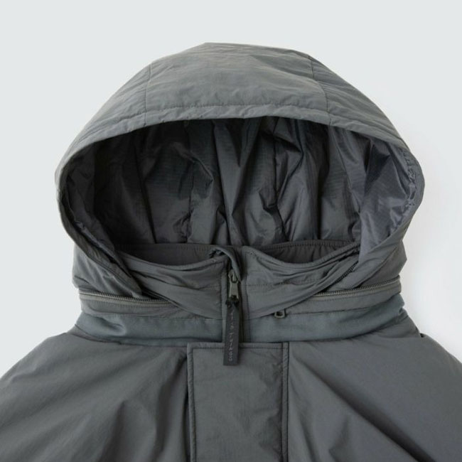 近年の日本の気候や、レイヤードのし易さ、収納性に配慮し中綿量を調整することで、オーバーサイズながら膨らみすぎないスッキリしたシルエット。