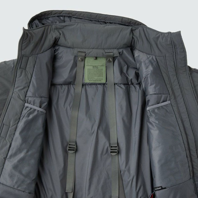 表地に非フッ素高耐久撥水加工CZEREXを施したハリ感のあるCORDURA NYLON、中綿にCLIMASHIELD COMBATを使用。