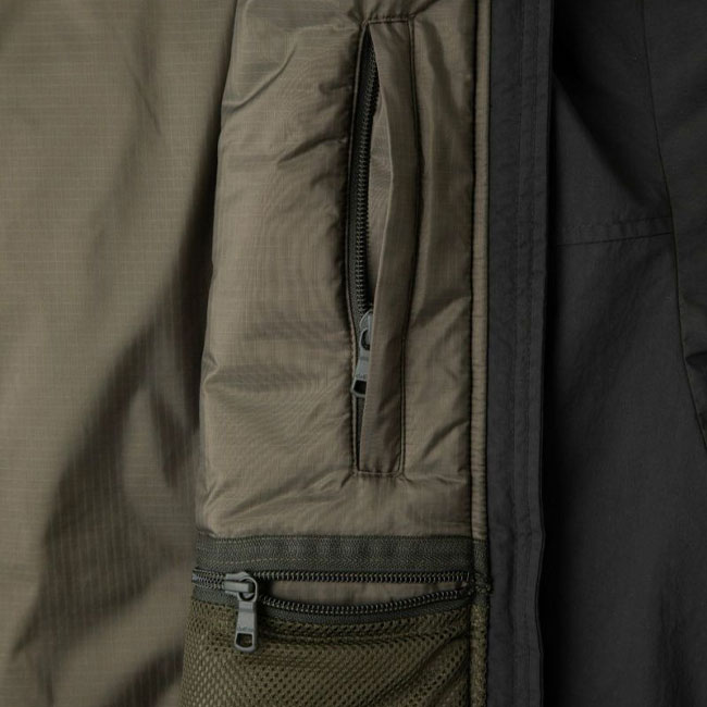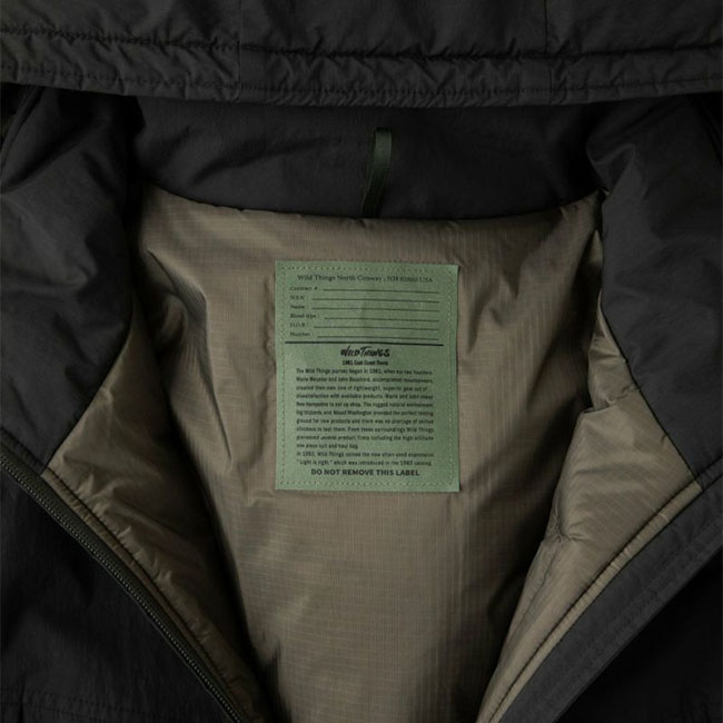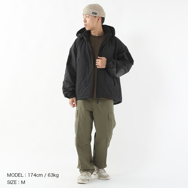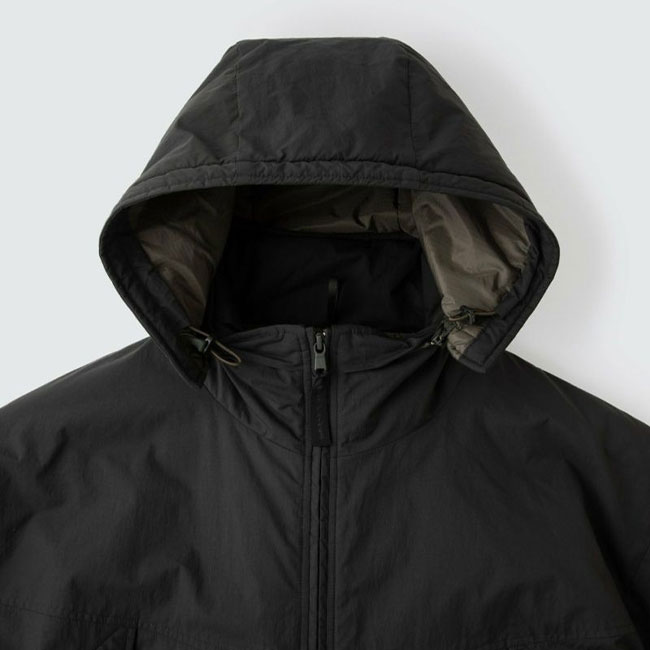 表地に非フッ素高耐久撥水加工CZEREXを施したハリ感のあるCORDURA NYLON、中綿にCLIMASHIELD COMBATを使用。