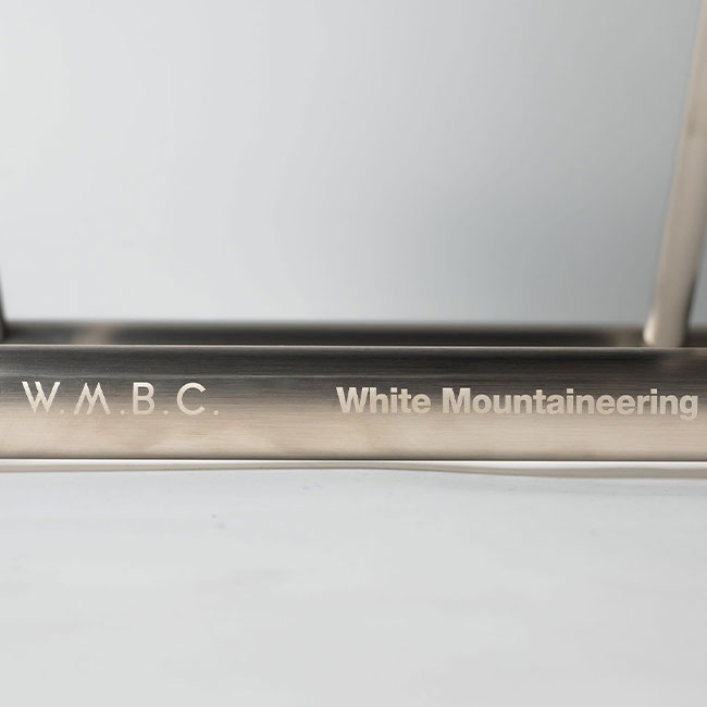 ステンレス製のフレームには、W.M.B.C. White Mountaineering とmuracoのロゴをレーザーで刻印しました。