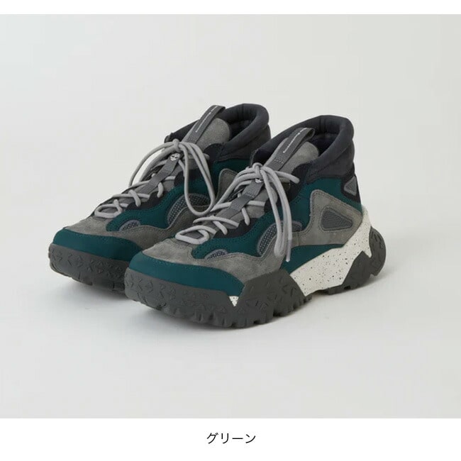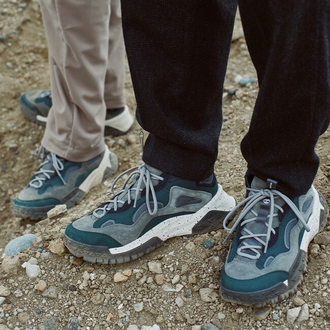 ハイキングタイプのスニーカー「Motion Scramble」をベースに製作しています。マットな風合いのあるプレミアムティンバーランド®レザーを使用しております。