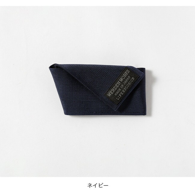 背面にはカード、定期券を束ねる為のゴムを配し、必要最低限の機能を持たせています(推奨1~5枚)。掌サイズで、シャツ・ジャケット・パンツポケットにスムーズに収まります。