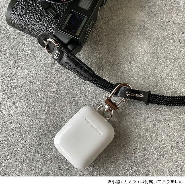 本格クライミングロープを使用した、斜めがけ仕様のヨセミテカメラストラップ。