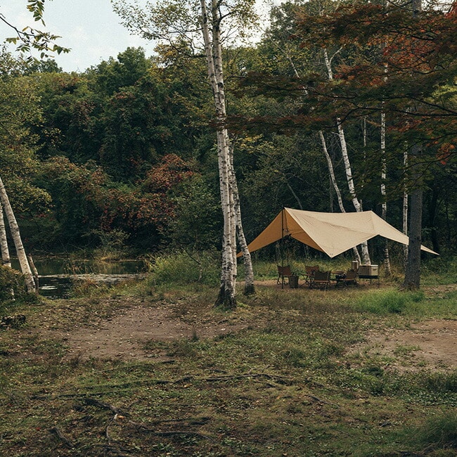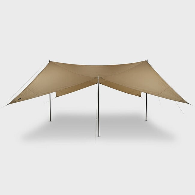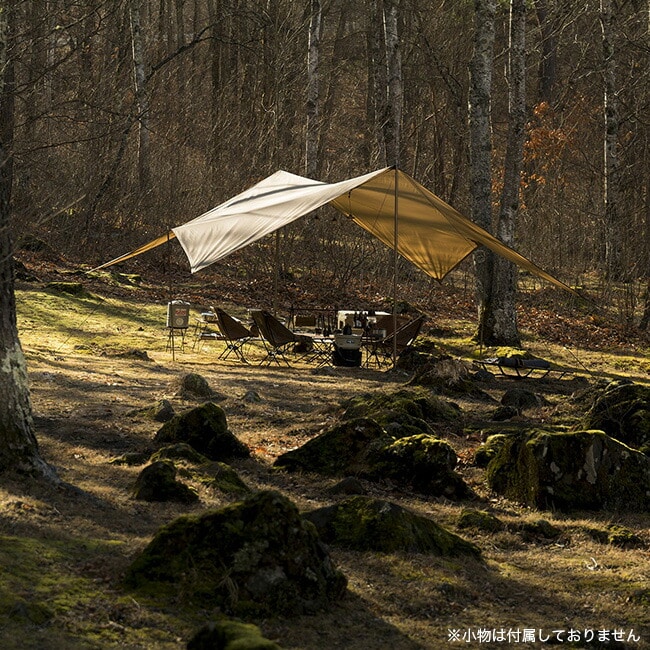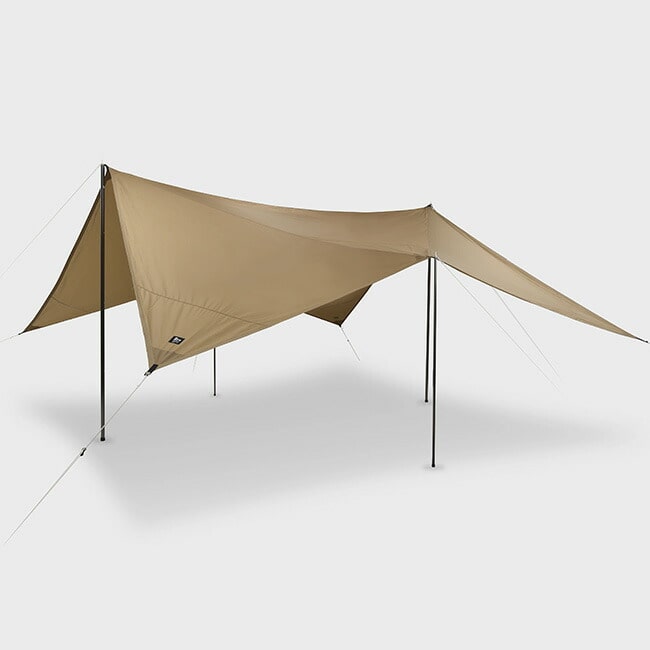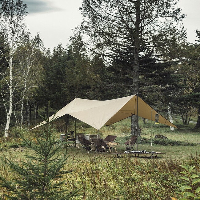 軽量かつ高強度なシリコーンポリエステル生地を採用しているため、携行性と耐久性にも優れ、さまざまなフィールドで活躍するタープです。
