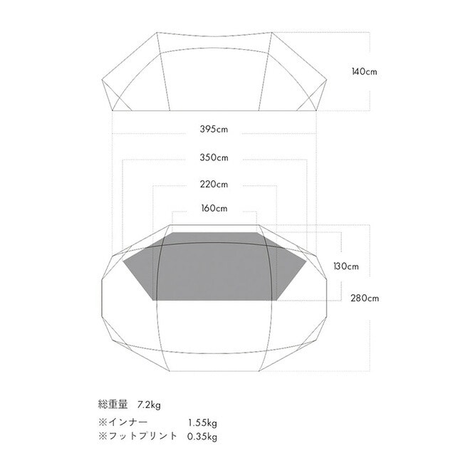 ■重量:7.2kg(インナー:1.55kg/フットプリント:0.35kg含む)