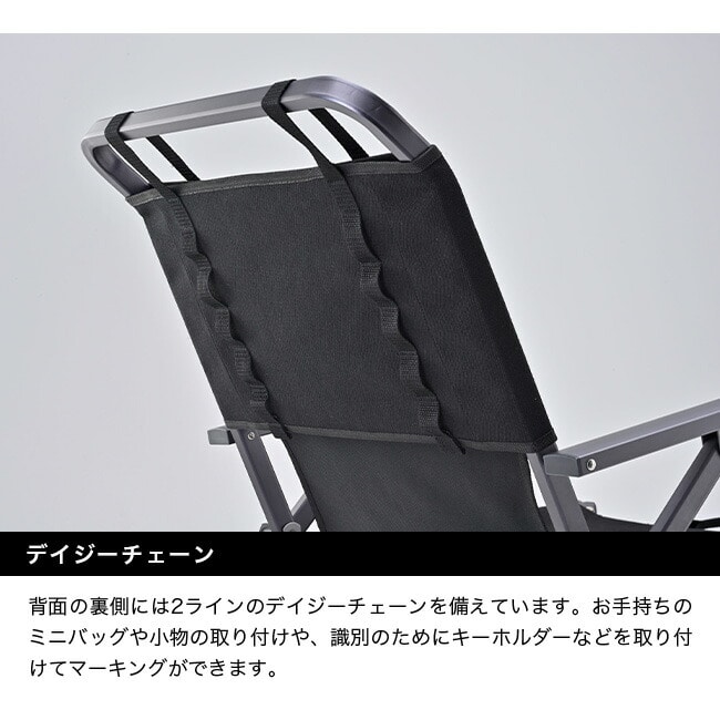 背面には小物を掛けられるデイジーチェーンを備え、アーム部分には手触りに配慮したアルミ素材を採用。