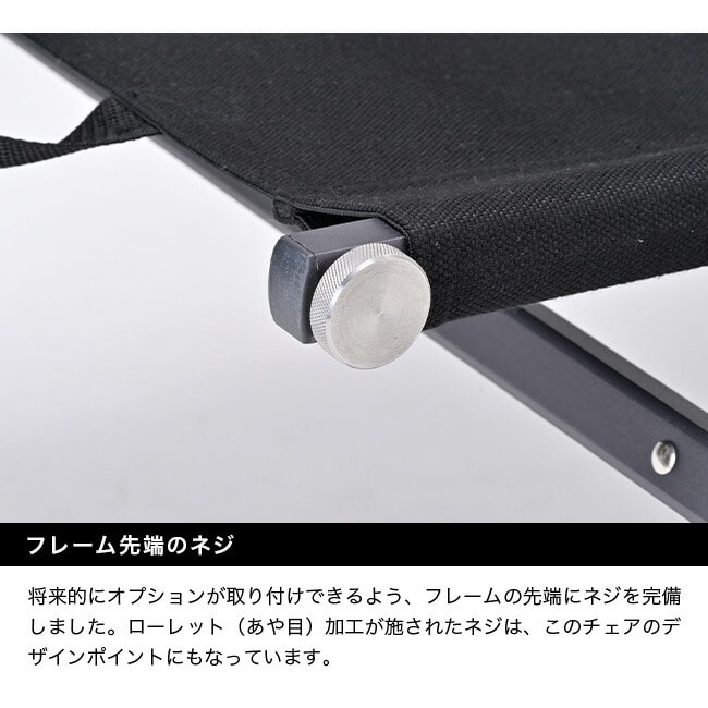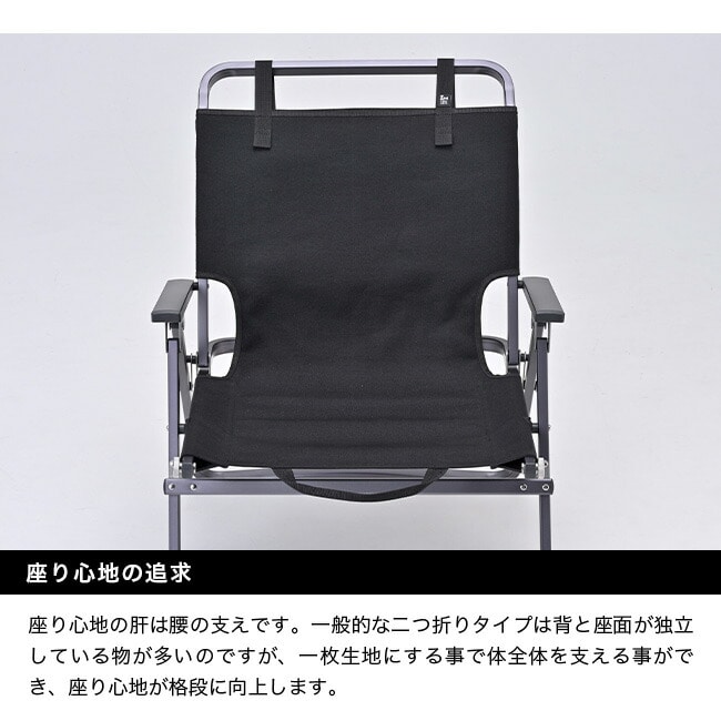 アウトドアでも日常の延長のようにくつろげることを目指して設計された折りたたみチェアです。