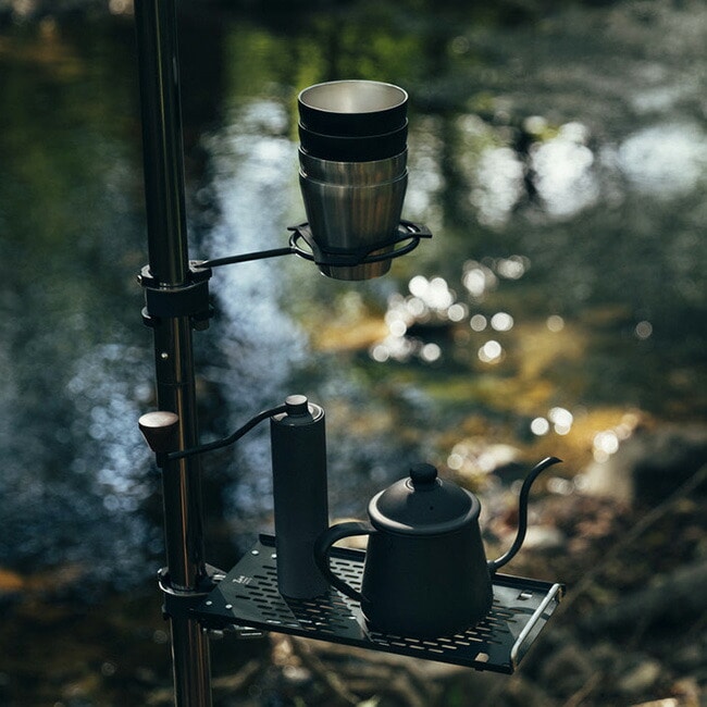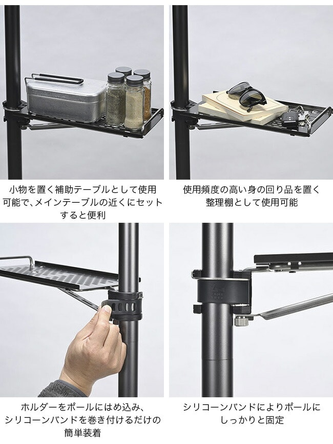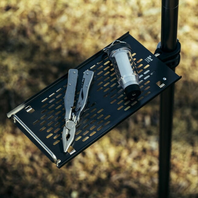 また、携帯電話や車のキー、本、サングラスなど使用頻度の高い身の回り品を整理する棚としても活用でき、特にワンポールシェルターでは最も標準的な使い方として人気があります。