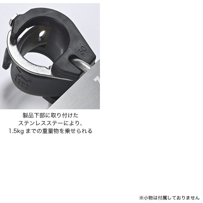 耐荷重は1.5kgまで可能で、テーブル底部にはステンレスの支えが設けられ、しっかりと重量に耐える設計です。