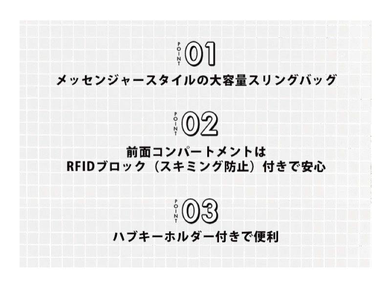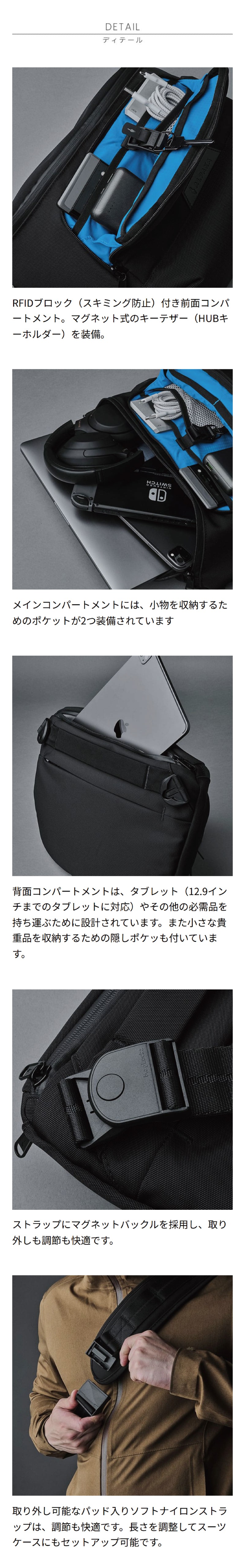 ・前面コンパートメント(マグネット式のキーテザー(HUBキーホルダー)装備