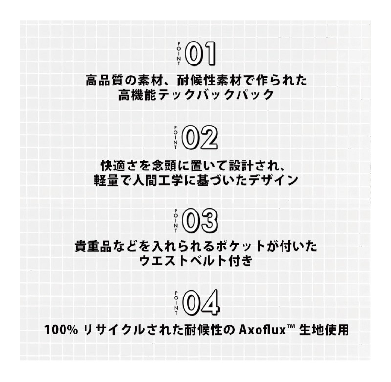 商品名 ELEMENTS TRAVEL BACKPACK AXOFLUX
